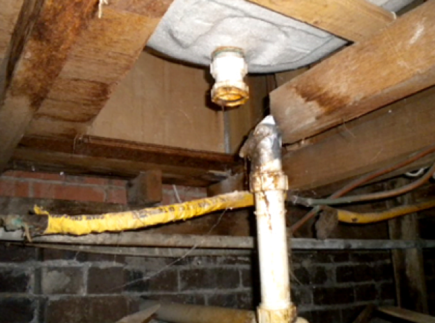 The inspector found underneath the bathroom, that the pipes had been connected with duct tape and hadn’t been properly put together. The bath water was running straight onto the ground underneath and had been doing so for over 12 months.