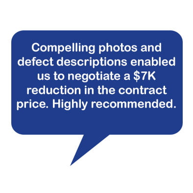 “After seeing how thorough yet fair Andrew was when inspecting a home I was selling – I engaged him for the home I later bought. He is meticulous and detailed, the report arrived same day and the compelling photos and defect descriptions enabled us to negotiate a $7k reduction in the contract price. Highly recommended!!”