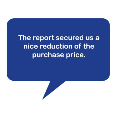 “Excellent company, with a thorough and detailed report. It was great to discuss the results over the phone to better understand the issues identified. I will certainly recommend to others, and I will certainly use again if sale does not progress”.
