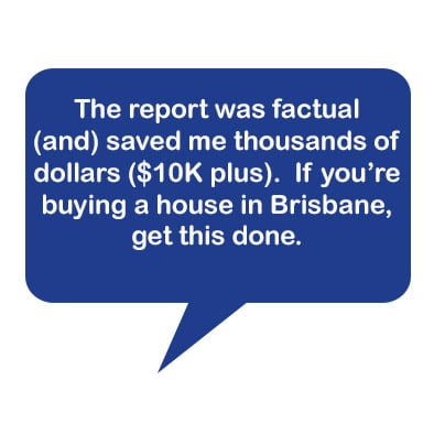 The testimonial we are most proud of is the fact that real estate agents rarely refer us as we are not prepared to carry out the building inspections they desire to ensure a sale. We are 100% independent and the agencies simply don’t like us. We’re all about the buyer – we work for you. Meanwhile over 80% of our clients come to us after glowing reviews from our existing customers. We love that we’re the most trusted building and pest inspectors in Brisbane. We take this as a great compliment.
